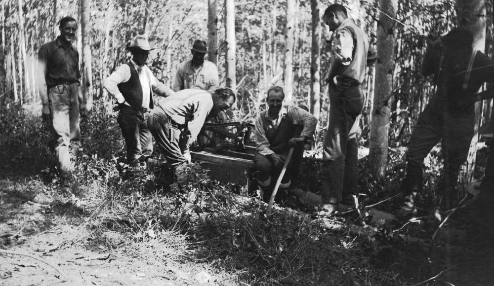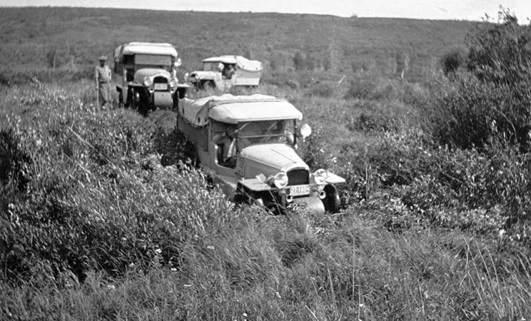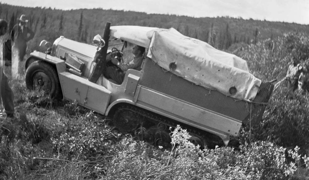 In 1934, French-born American millionaire Charles Bedaux embarked upon an expedition to cross 2,300 kilometers of unmapped northern BC territory east of the Rocky Mountains, using the then newly designed Citroën halftrack vehicles, initiating one of the most extravagantly equipped overland parties ever seen in British Columbia – including a fleet of automobiles, 130 packhorses, 53 Canadian cowboys, 400 pounds of books, more than 20 tons of supplies, 2 professional surveyors, a geologist, and a film crew led by Oscar-winning Hollywood cinematographer Floyd Crosby. A hand-written memoir and typed notes have survived from the expedition that was created by A.H. Phipps, one of the surveying crew members who recorded his observations about the terrain, surveying activities, and ultimately the causes for the expedition’s failure. The memoirs document evidence of the regional participation of the team, from the involvement of individual cowboys from the Peace River country, to interactions with pioneer families from the Peace River region, and interactions with First Nations individuals from Northern British Columbia that the Bedaux party encountered on its route. Additionally, Phipps provides personal remarks about members of the Bedaux party. (source https://unbc.arcabc.ca)
