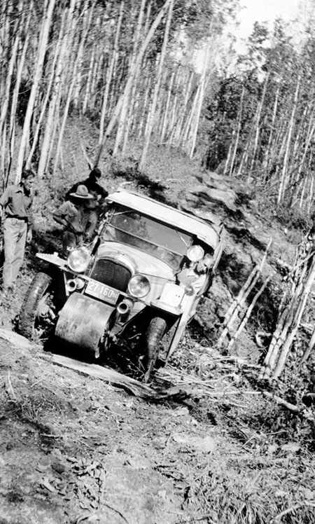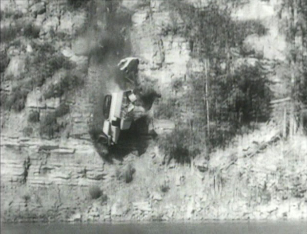 In August, two of the Citroëns were filmed being pushed over a 300 foot cliff, and it was reported that some of the expedition members barely escaped death in these terrible "accidents". A third Citroën was floated down a river on a raft, for an explosion scene that didn't pan out when the dynamite failed to explode.