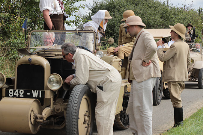 On September 11 and 12, the village of Vincy-Maneuver, about 70 kilometers east of Paris, had hosted the Journée de la chenille, a weekend filled with military vehicles. As part of this event, the first Rallye Kégresse in recent times was organized. The occasion was the celebration of the 90 years of the yellow expedition. 14 Kégresse participated in the Rally, most from France and one from Denmark, which was the largest concentration of Kégresse since WWII, this time with peaceful intentions. A 6-kilometer drive each day was planned in which most Kégresse participated. A 600sqm stand was dedicated to the expeditions of the Citroën Kégresse Autochenille.